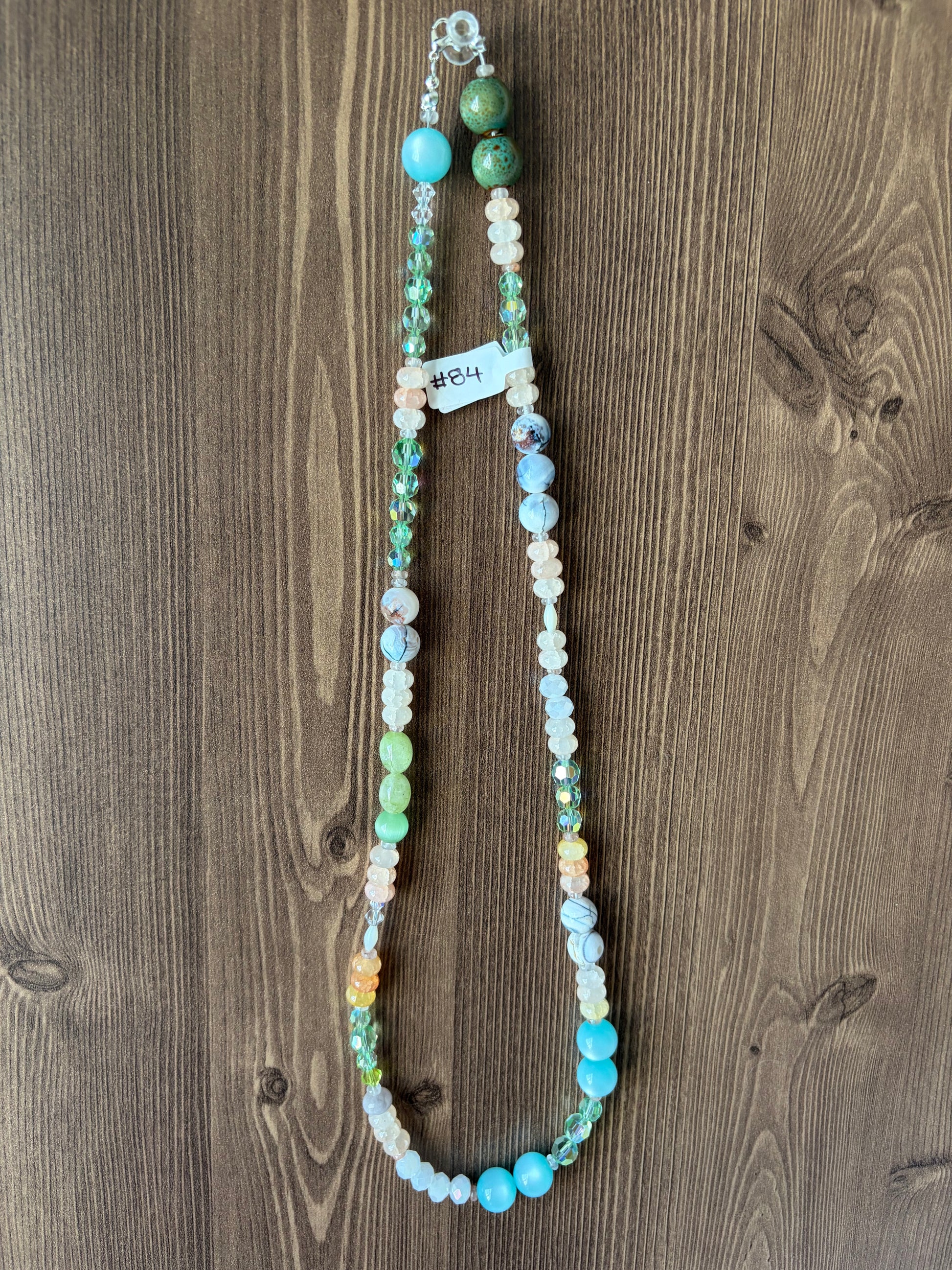 Soft hues, gentle shine, and a touch of magic — Pastel Daydream is a delicate statement piece designed to brighten your everyday look. Each bead is thoughtfully selected from thrifted and vintage finds, combining pastel gemstones, glass, and pearlescent accents for a truly one-of-a-kind finish.