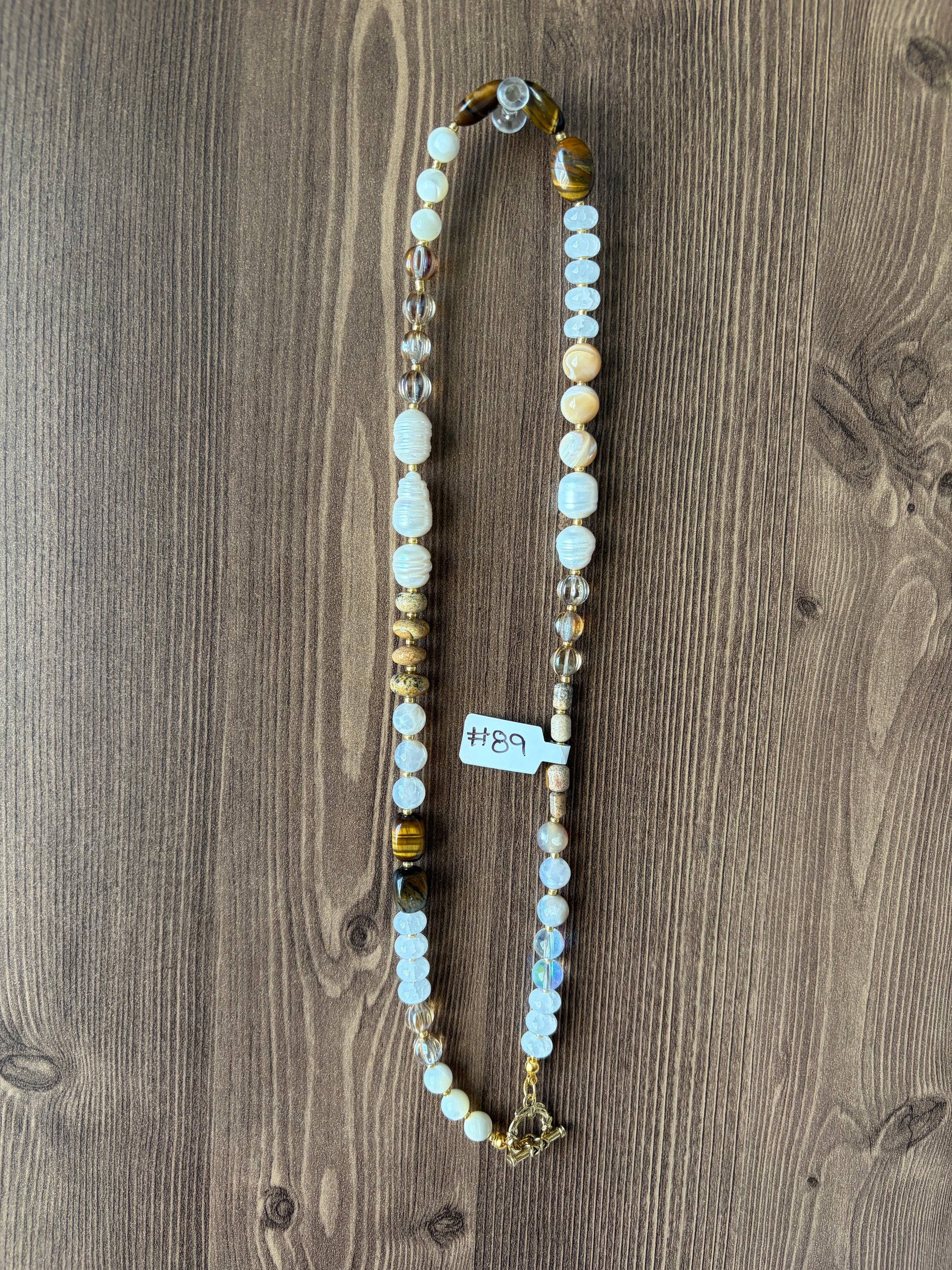 Handmade with repurposed pearl-like and glass beads